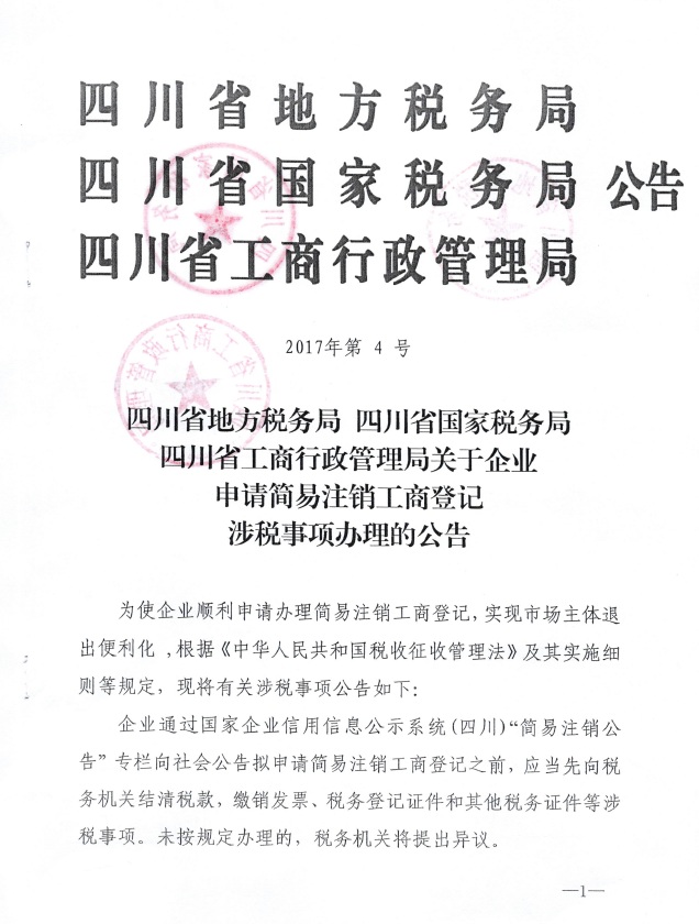 四川省地方稅務局 四川省國家稅務局 四川省工商行政管理局關于企業申請簡易注銷工商登記涉稅事項辦理的公告